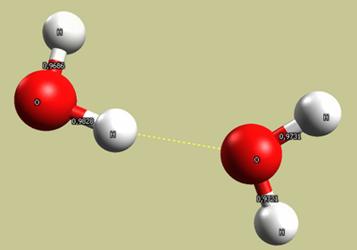 Programa Avogadro aplicado a la polaridad del agua y a la formación de puentes de hidrógeno.
