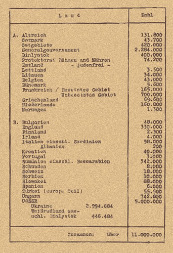 Después de una reunión entre altos oficiales del gobierno alemán a finales de enero de 1942 en la villa del barrio de Berlín al borde del lago Wannsee, se informó sobre la metodología que se utilizaría para ejecutar la “solución final para la cuestión judía”. Como consecuencia de esta conferencia, (conocida como la Conferencia de Wannsee) todo el aparato de Estado Alemán se convirtió en cómplice pasivo y activo del genocidio de los judíos. A partir de allí judíos de Europa occidental también fueron deportados al Este para su exterminio.