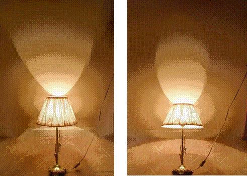 En el hotel no podía inclinar la pared, pero sí la lámpara. Estos son mis intentos de conseguir una parábola y una elipse: